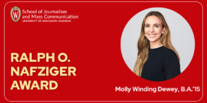 This award is named for the late Ralph O. Nafziger, who was director of the school from 1949 until his retirement in 1966. Nafziger built an international reputation as a leader in journalism education. The honorees receive recognition for showing remarkable professional initiative and promise within 10 years of graduation.