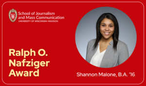 It is an honor to be considered among the recipients of this award. The SJMC has been a source of support and encouragement since I stepped into Vilas Hall, and has continued throughout my career. This is an incredible recognition from leaders in journalism who have poured into me and whom I deeply respect. I am very thankful.