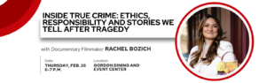 Join Rachel Bozich on February 26th for her talk about the ethics and other behind-the-scenes work of true crime documentaries.